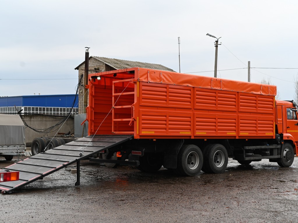 Скотовоз на базе автомобиля КамАЗ 65115 оптимален для транспортировки крупного рогатого скота. Модель оборудована системой слива мочи и внутренним освещением. Пол кузова изготовлен из стального листа толщиной 3 мм, дополнительное покрытие - из алюминиевого листа толщиной 1,5 мм. Верхняя часть надстройки открывается в теплую погоду, в осенне-зимний сезон закрывается пологом с клапанами для вентиляции.